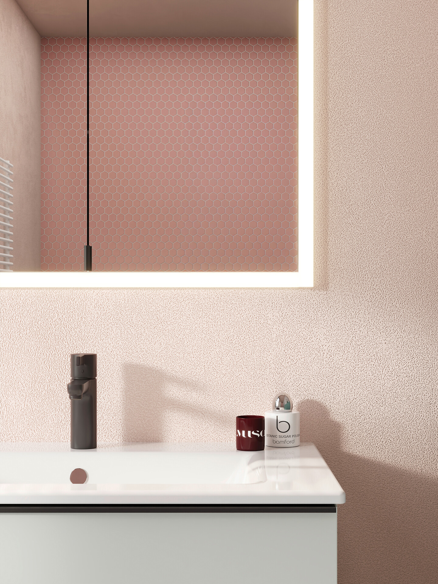 Außerdem kann bei dem in sieben Breiten von 60 bis 1.60 cm verfügbaren Spiegelschrank rl20 zwischen einer Aufputzvariante (mit verspiegeltem Korpus) und einer Variante zum Wandeinbau gewählt werden. Da die umlaufenden Leuchten den Wandausschnitt abdecken, wird der Montageaufwand der Einbauvariante deutlich verringert. Ausgestattet mit einer neuen E-Box mit Drehschalter zum Dimmen und zur Lichttemperatursteuerung, Raumschaltungsfähigkeit und USB-C-Anschlüssen, einer über die gesamte Breite gehenden Waschtischbeleuchtung sowie einer in vielen Details wie etwa den Rauchglas-Ablagen sehr hochwertigen Innenausstattung bietet der Spiegelschrank rl20 ein hervorragendes Preis-Leistungs-Verhältnis.